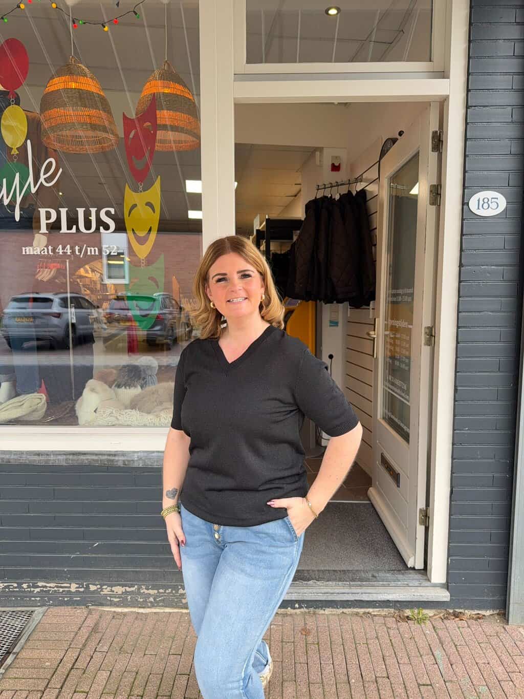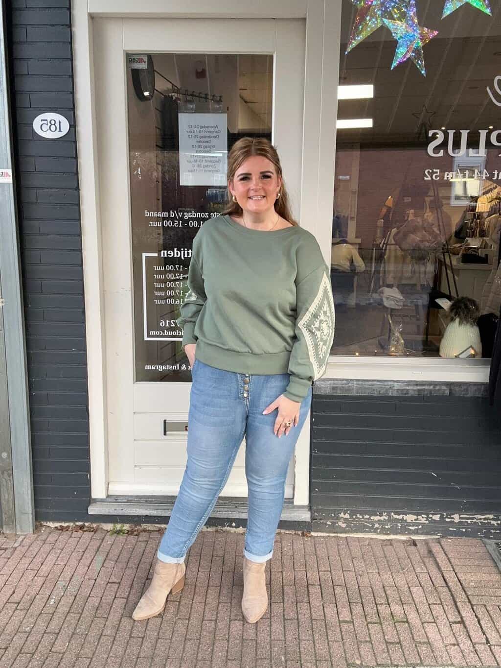 De top is alleen op de webshop te krijgen. De jeans zowel in de winkel als in de webshop.