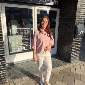 Een moderne, stijlvolle vrouw met jarenlange ervaring in de mode. Ze ademt stijl, ervaring en zelfvertrouwen. Met haar elegante uitstraling en moderne flair is ze het levende bewijs dat mode tijdloos is. Alles kan, als je het maar durft en probeert zegt ze altijd.