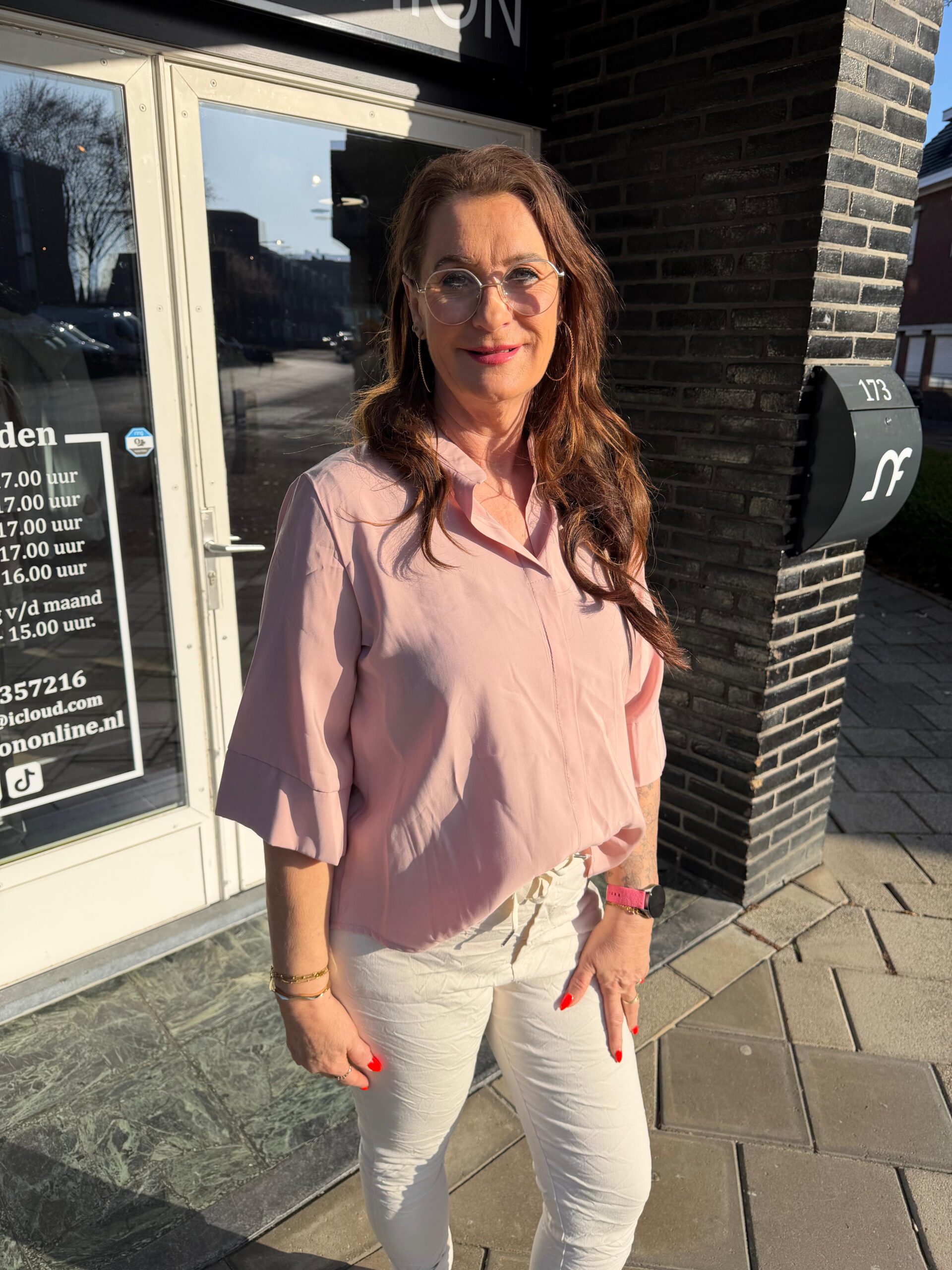 Blouse Irene in deze mooie oud roze tint is een echte favoriet! De zachte kleur geeft je outfit een warme en vrouwelijke uitstraling, terwijl de luchtige, soepelvallende stof zorgt voor een comfortabele en flatterende fit.