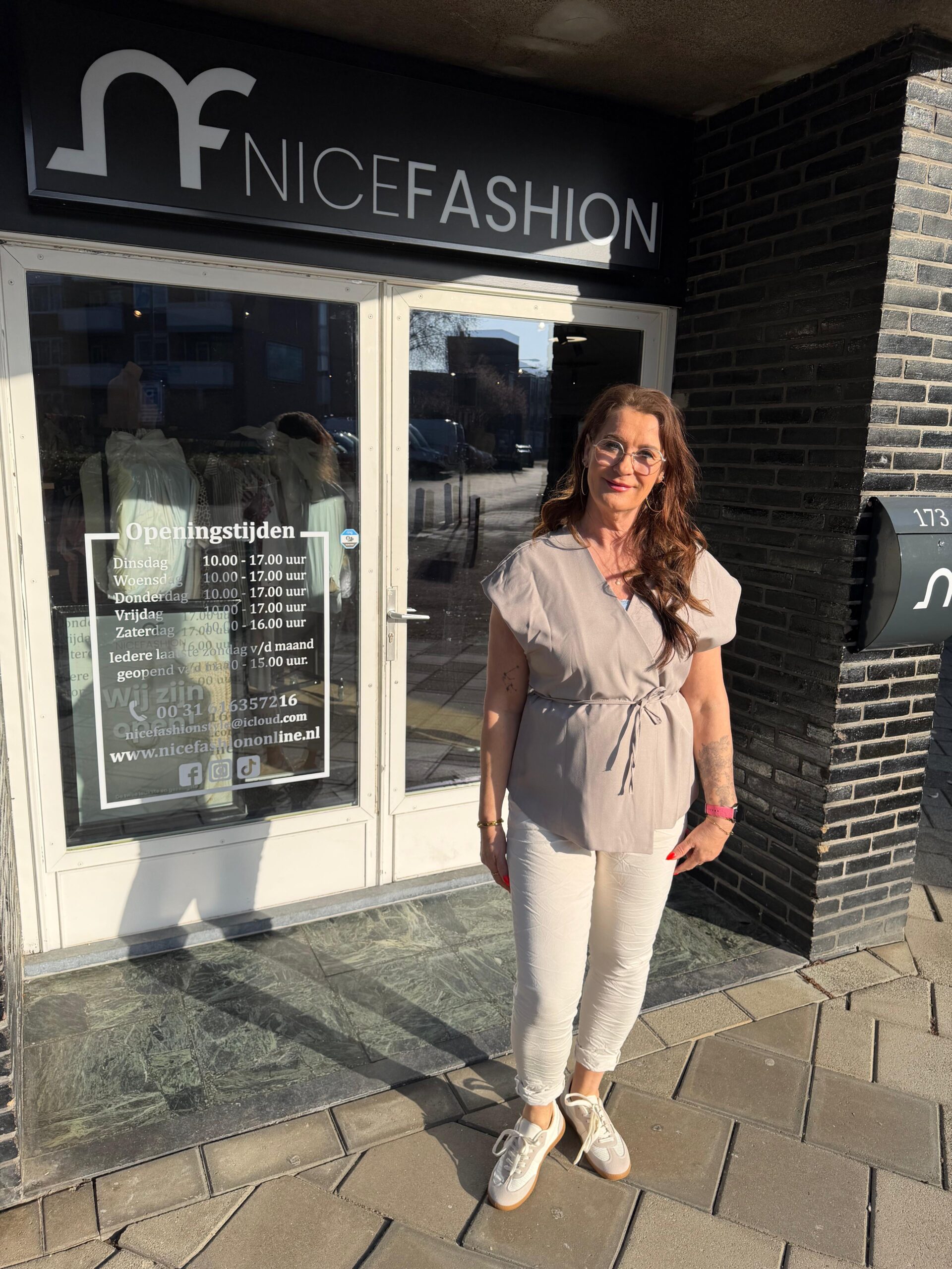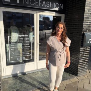 Monique is het gezicht van Nice Fahion Online. Stijlvol, krachtig en vol passie voor mode. Met haar feilloze gevoel voor mode, oog voor detail en warme uitstraling weet ze precies hoe ze iedere vrouw laat stralen. Ze draagt wat ze wil, omdat ze weet wat haar staat. Of het nu gaat om een elegante blazer, een trendy jeans of een verfijnde jurk, Monique bewijst dat zelfvertrouwen het mooiste accessoire is dat je kunt dragen. Jarenlang werkt ze reeds met mode, maar haar passie gaat verder dan kleding alleen. Voor Monique draait het om gevoel: dat moment waarop een vrouw in de spiegel kijkt en zegt; ja, dit ben ik. In haar winkel en online collectie laat ze zien dat stijl persoonlijk is, tijdloos en voor iedereen bereikbaar. Monique is de inspiratie achter iedere look, het gezicht achter de glimlach.