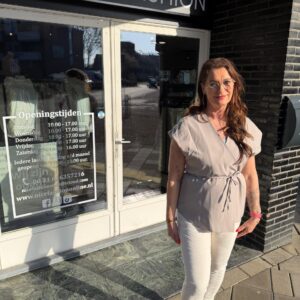 Een moderne, stijlvolle vrouw met jarenlange ervaring in de mode. Ze ademt stijl, ervaring en zelfvertrouwen. Met haar elegante uitstraling en moderne flair is ze het levende bewijs dat mode tijdloos is. Alles kan, als je het maar durft en probeert zegt ze altijd.