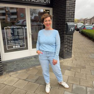 Een moderne, stijlvolle vrouw met jarenlange ervaring in de mode. Ze ademt stijl, ervaring en zelfvertrouwen. Met haar elegante uitstraling en moderne flair is ze het levende bewijs dat mode tijdloos is. Alles kan, als je het maar durft en probeert zegt ze altijd.