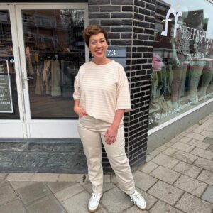 Een moderne, stijlvolle vrouw met jarenlange ervaring in de mode. Ze ademt stijl, ervaring en zelfvertrouwen. Met haar elegante uitstraling en moderne flair is ze het levende bewijs dat mode tijdloos is. Alles kan, als je het maar durft en probeert zegt ze altijd.