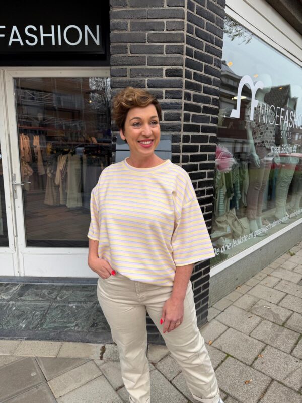 Fris gestreept shirt in zachte pastelkleuren. Comfortabel en stijlvol voor elke dag.