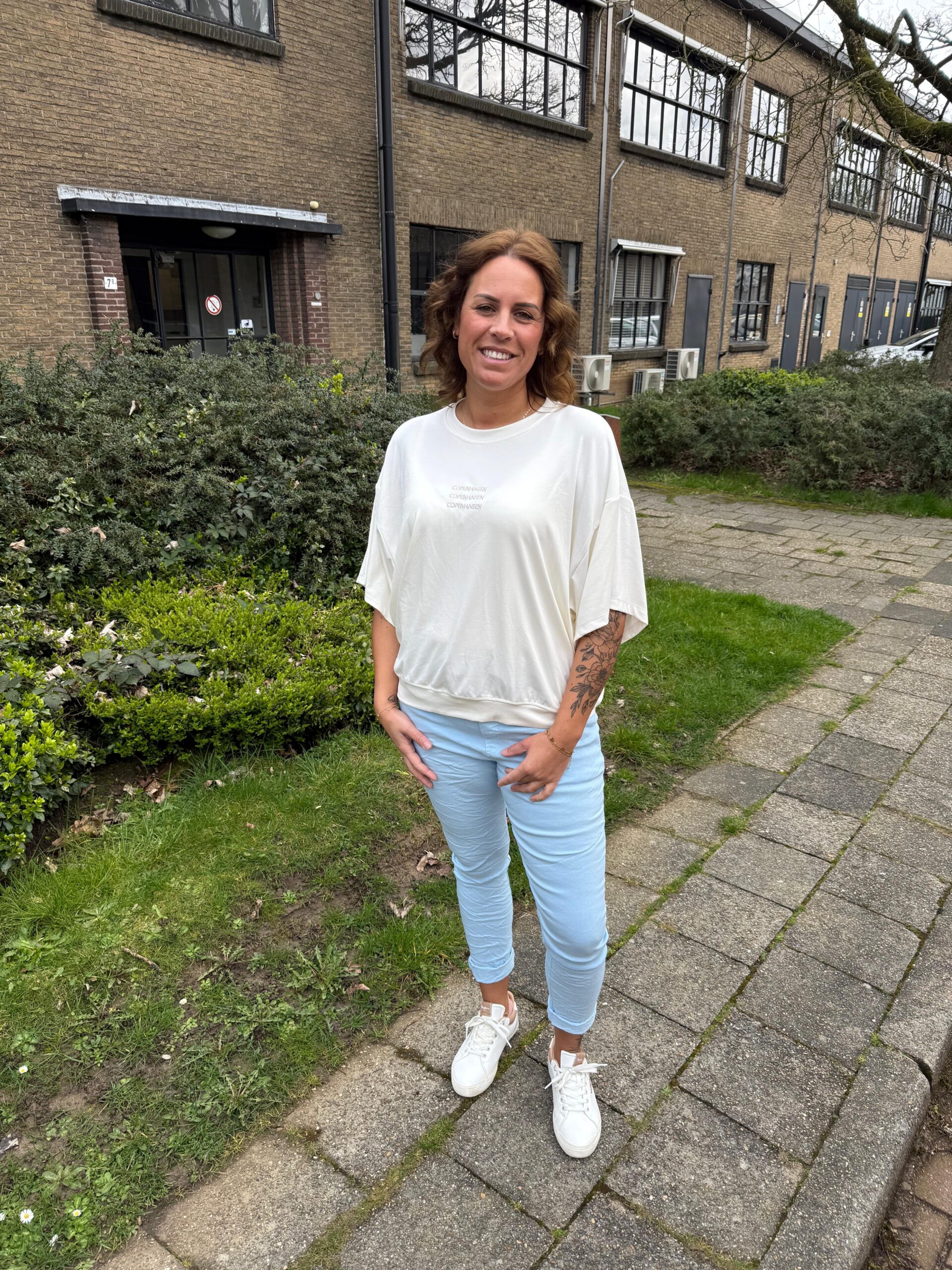 Jolanda straalt pure, moeiteloze elegantie uit. Met haar natuurlijke uitstraling en zelfverzekerde houding laat zij zien hoe comfortabel en stijlvol dagelijkse mode kan zijn. Haar look is modern, vrouwelijk en perfect in balans tussen casual en chic.