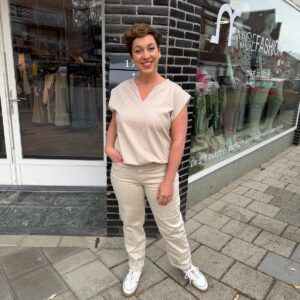 Een moderne, stijlvolle vrouw met jarenlange ervaring in de mode. Ze ademt stijl, ervaring en zelfvertrouwen. Met haar elegante uitstraling en moderne flair is ze het levende bewijs dat mode tijdloos is. Alles kan, als je het maar durft en probeert zegt ze altijd.