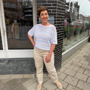 Een moderne, stijlvolle vrouw met jarenlange ervaring in de mode. Ze ademt stijl, ervaring en zelfvertrouwen. Met haar elegante uitstraling en moderne flair is ze het levende bewijs dat mode tijdloos is. Alles kan, als je het maar durft en probeert zegt ze altijd.