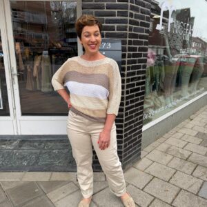 Een moderne, stijlvolle vrouw met jarenlange ervaring in de mode. Ze ademt stijl, ervaring en zelfvertrouwen. Met haar elegante uitstraling en moderne flair is ze het levende bewijs dat mode tijdloos is. Alles kan, als je het maar durft en probeert zegt ze altijd.