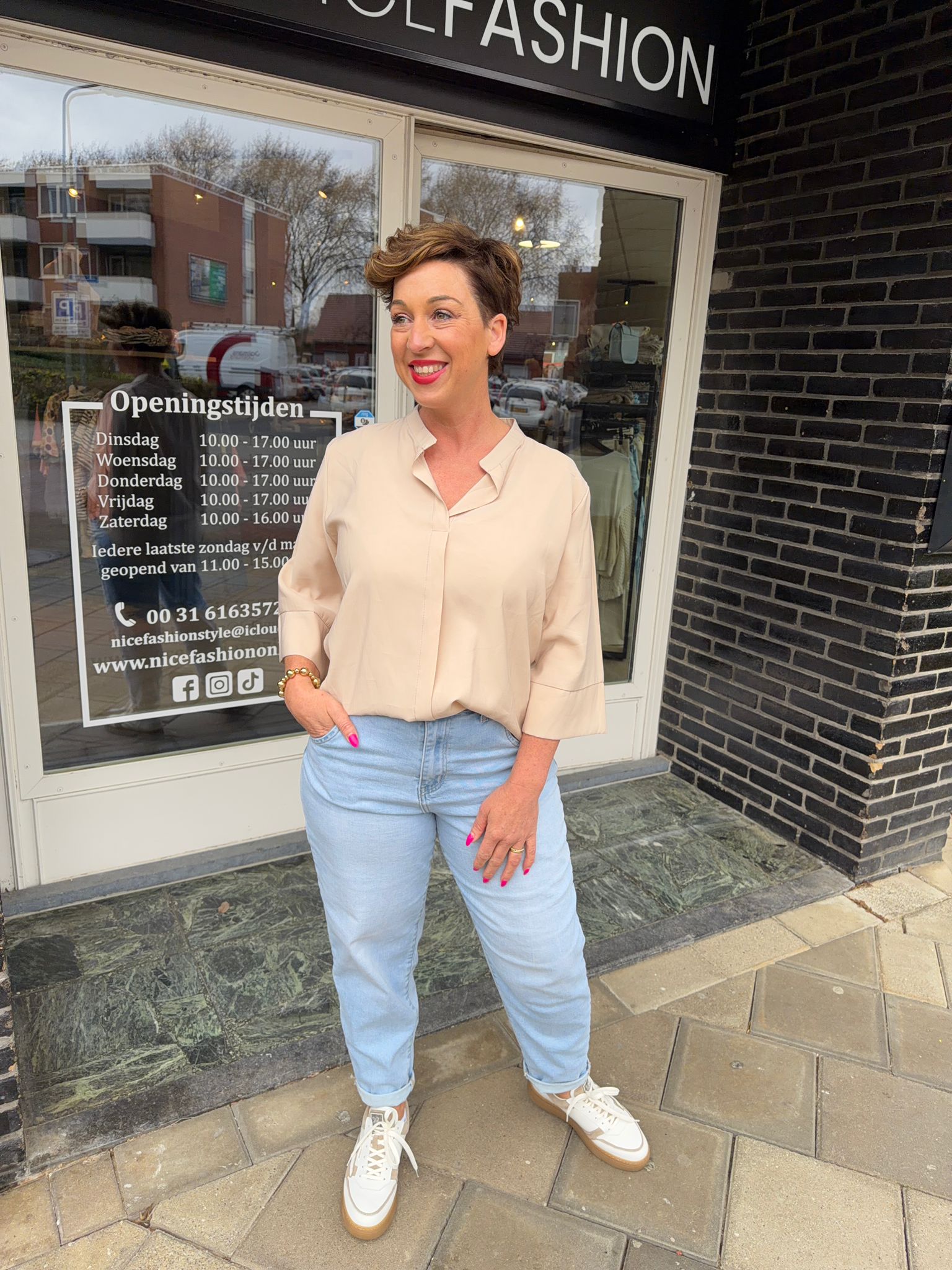 Monique is het gezicht van Nice Fahion Online. Stijlvol, krachtig en vol passie voor mode. Met haar feilloze gevoel voor mode, oog voor detail en warme uitstraling weet ze precies hoe ze iedere vrouw laat stralen. Ze draagt wat ze wil, omdat ze weet wat haar staat. Of het nu gaat om een elegante blazer, een trendy jeans of een verfijnde jurk, Monique bewijst dat zelfvertrouwen het mooiste accessoire is dat je kunt dragen. Jarenlang werkt ze reeds met mode, maar haar passie gaat verder dan kleding alleen. Voor Monique draait het om gevoel: dat moment waarop een vrouw in de spiegel kijkt en zegt; ja, dit ben ik. In haar winkel en online collectie laat ze zien dat stijl persoonlijk is, tijdloos en voor iedereen bereikbaar. Monique is de inspiratie achter iedere look, het gezicht achter de glimlach.