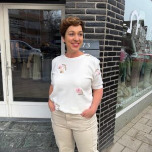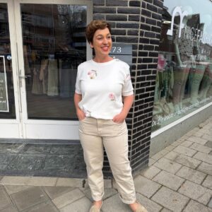 Een moderne, stijlvolle vrouw met jarenlange ervaring in de mode. Ze ademt stijl, ervaring en zelfvertrouwen. Met haar elegante uitstraling en moderne flair is ze het levende bewijs dat mode tijdloos is. Alles kan, als je het maar durft en probeert zegt ze altijd.