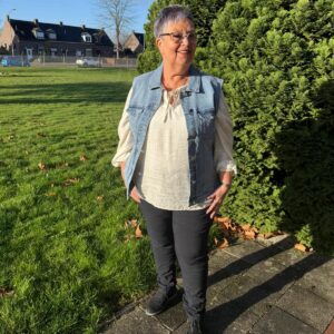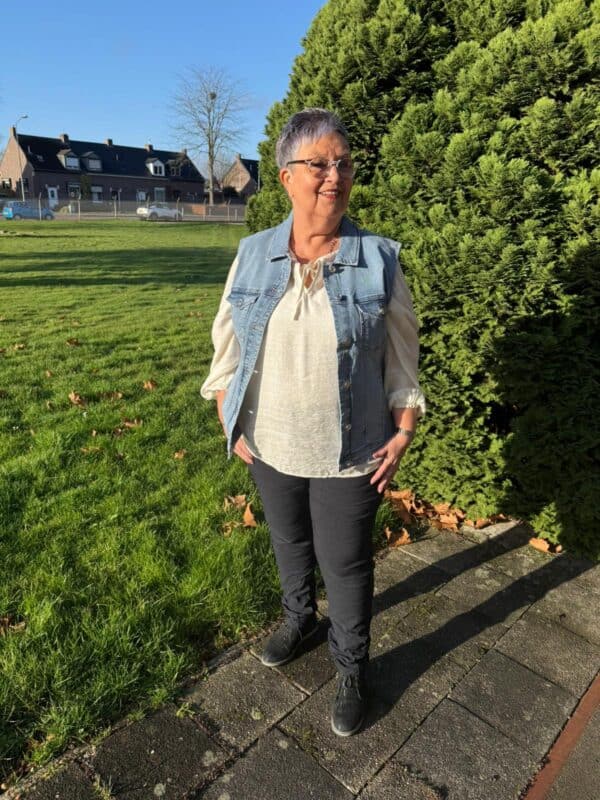Een moderne, stijlvolle vrouw met jarenlange ervaring in de mode. Ze ademt stijl, ervaring en zelfvertrouwen. Met haar elegante uitstraling en moderne flair is ze het levende bewijs dat mode tijdloos is. Alles kan, als je het maar durft en probeert zegt ze altijd.