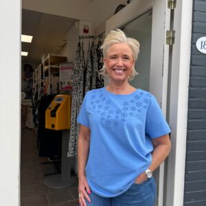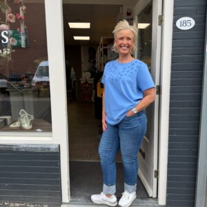 Een moderne, stijlvolle vrouw met jarenlange ervaring in de mode. Ze ademt stijl, ervaring en zelfvertrouwen. Met haar elegante uitstraling en moderne flair is ze het levende bewijs dat mode tijdloos is. Alles kan, als je het maar durft en probeert zegt ze altijd.
