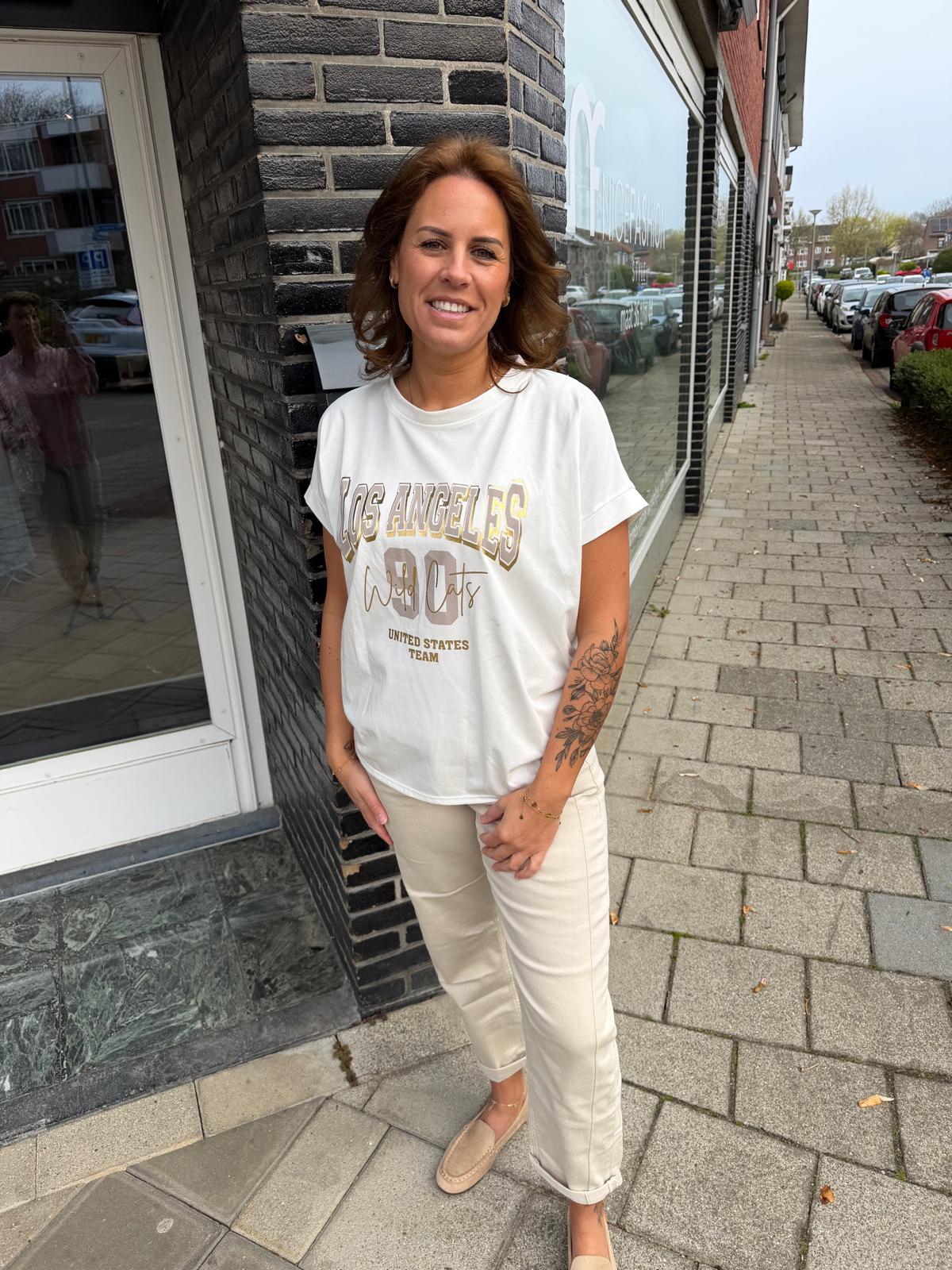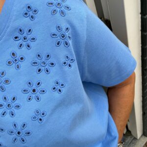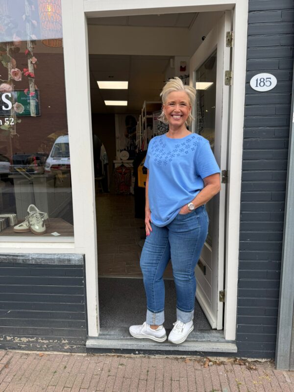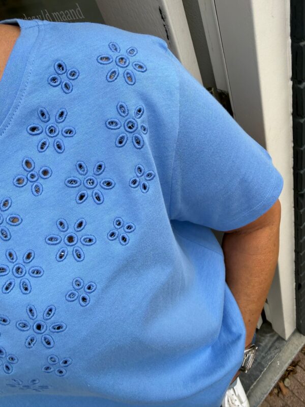 Comfortabel T-shirt met subtiele borduursels bij de hals. Fris, vrouwelijk en perfect voor een casual look.