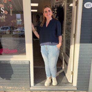 Een moderne, stijlvolle vrouw met jarenlange ervaring in de mode. Ze ademt stijl, ervaring en zelfvertrouwen. Met haar elegante uitstraling en moderne flair is ze het levende bewijs dat mode tijdloos is. Alles kan, als je het maar durft en probeert zegt ze altijd.