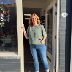 Een moderne, stijlvolle vrouw met jarenlange ervaring in de mode. Ze ademt stijl, ervaring en zelfvertrouwen. Met haar elegante uitstraling en moderne flair is ze het levende bewijs dat mode tijdloos is. Alles kan, als je het maar durft en probeert zegt ze altijd.