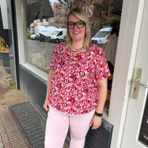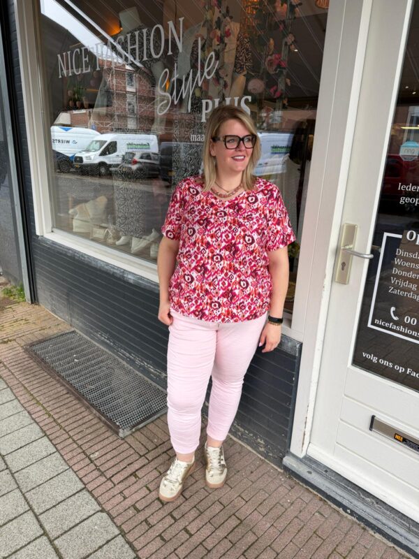 Luchtige top met V-hals en opvallende print. Comfortabel en perfect voor een kleurrijke, zomerse look!