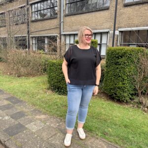 Een moderne, stijlvolle vrouw met jarenlange ervaring in de mode. Ze ademt stijl, ervaring en zelfvertrouwen. Met haar elegante uitstraling en moderne flair is ze het levende bewijs dat mode tijdloos is. Alles kan, als je het maar durft en probeert zegt ze altijd.