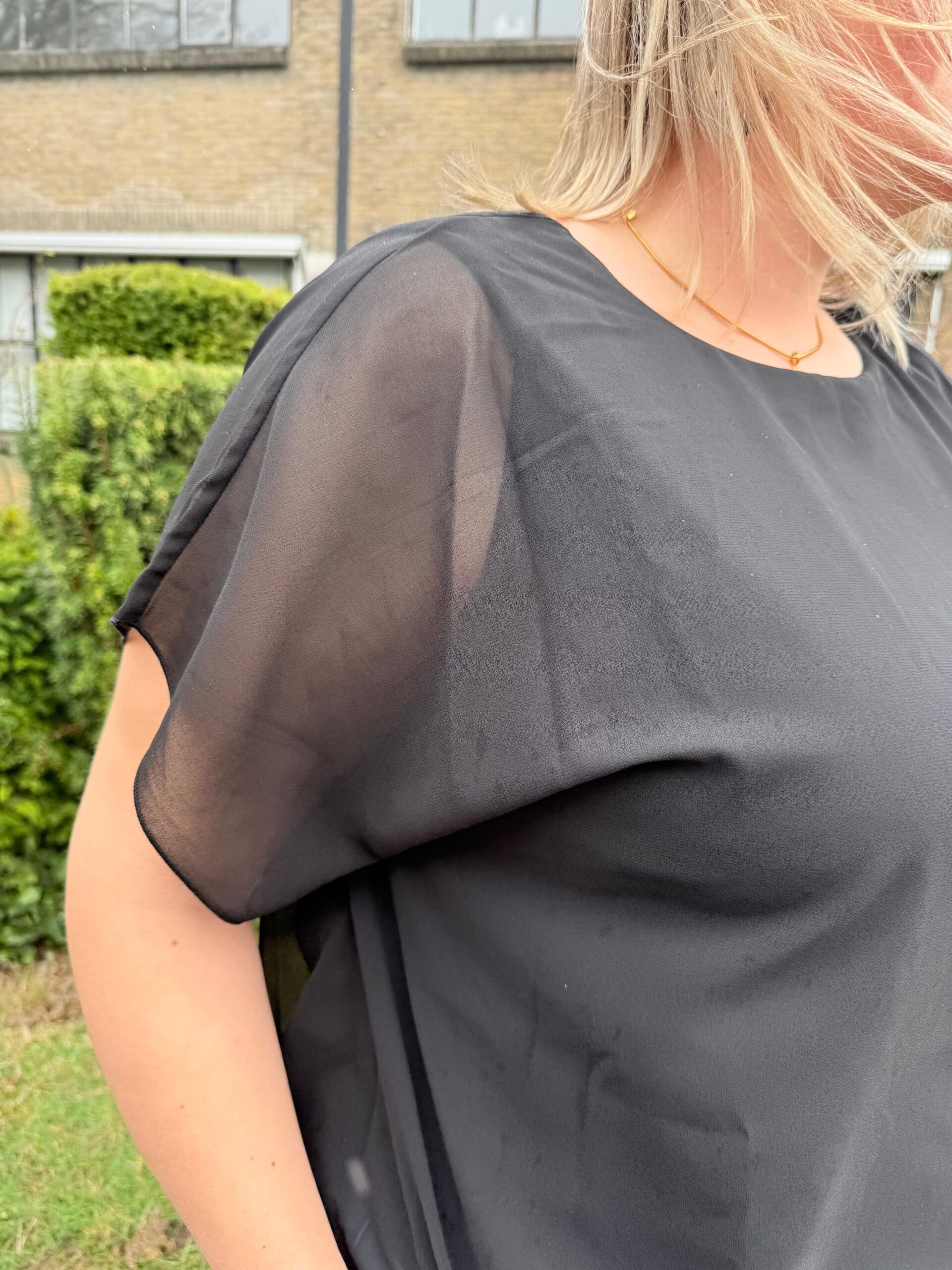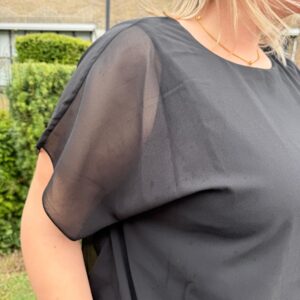 De luchtige, soepelvallende stof geeft de top een mooie, flowy look en zorgt voor optimaal draagcomfort. De transparante mouwen geven een speelse en vrouwelijke touch, terwijl de losvallende pasvorm mooi om het lichaam valt.